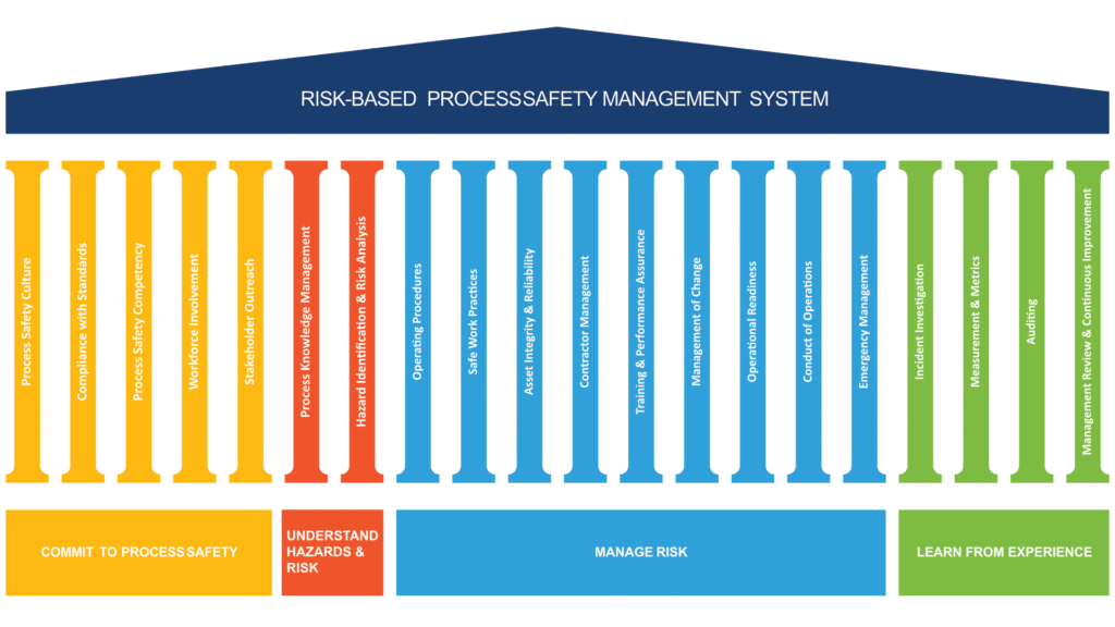 A “Complete Solution” for process safety management, as defined by the Center for Chemical Process Safety (CCPS) “Guidelines for Risk Based Process Safety (RBPS)” is illustrated below. The RBPS management system incorporates four main accident prevention foundation blocks that support the
